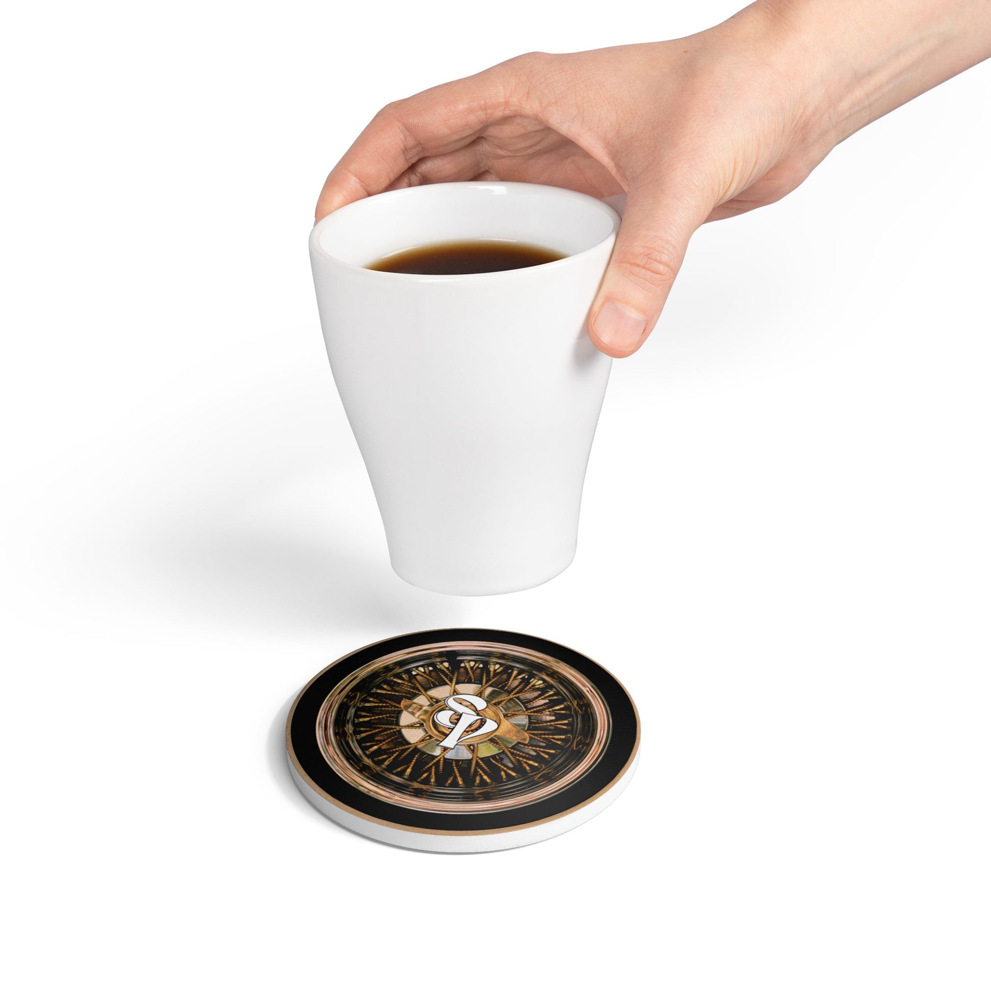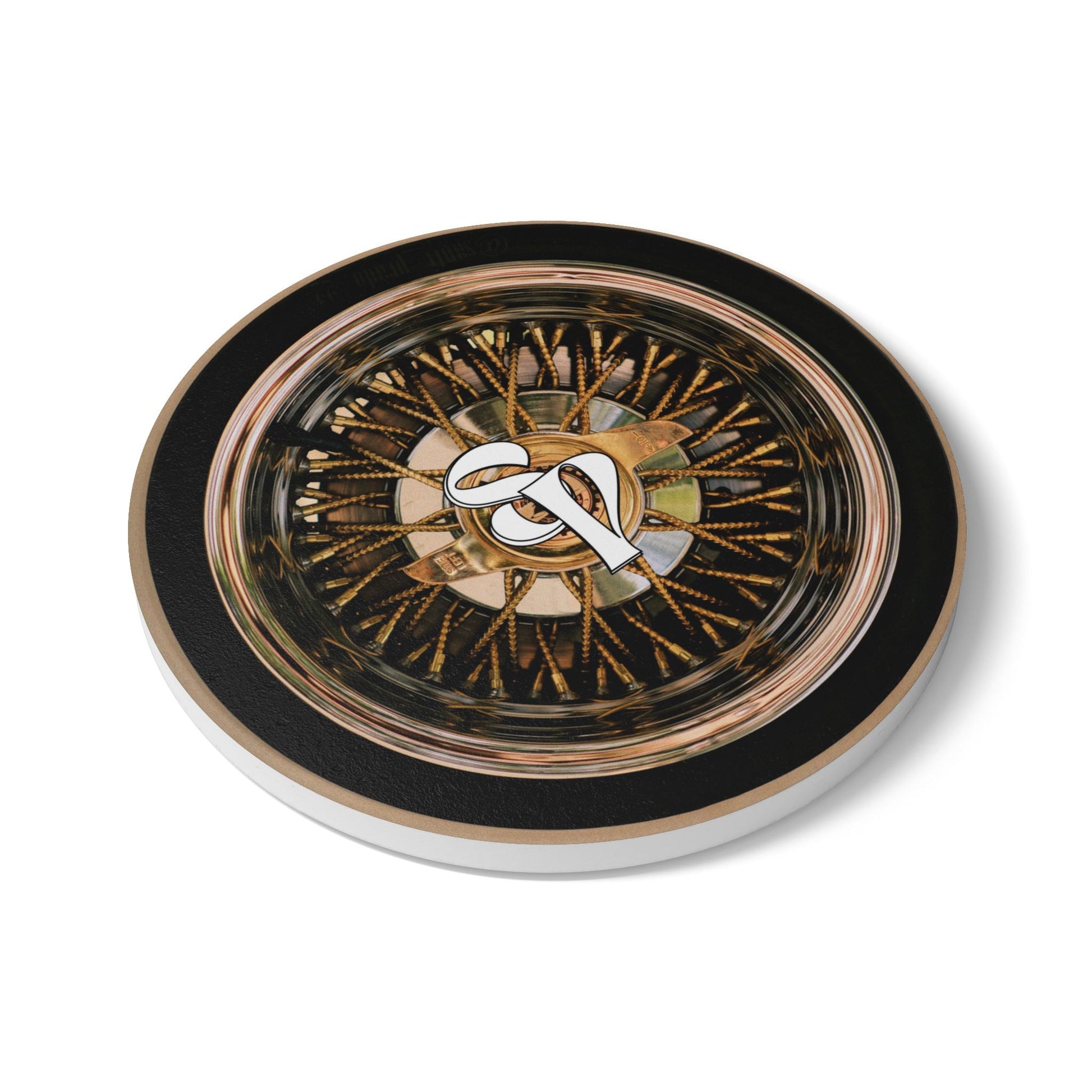 Elevate your table decor with this stylish ceramic coaster featuring a photo of a gold lowrider wheel. Perfect for car enthusiasts and those who appreciate unique, urban-inspired designs. Ideal for adding a touch of personality to your living space or gifting to a loved one who loves cars.